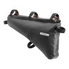 Rahmentasche in 2 Größen mit schlankem Rollverschluss; große Öffnung für besseres Beladen; 6 austauschbare und individuell positionierbare Klettbänder zur Befestigung an Oberrohr, Sattel- und/oder Unterrohr; Klettband im Tascheninneren verhindert Überwölbung der Tasche; abriebfestes, PU-beschichtetes Nylongewebe; geeignet für Montage an Carbon-Rahmen.