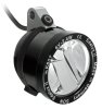 - Variante mit Schalter: mit 140 cm Koaxialkabel. Der Anschluss des Rücklichts erfolgt per Ringkabelschuh an einer Gewindebuchse (damit kein Wasser stehenbleibt)