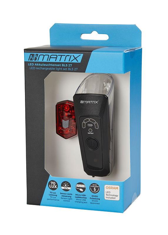 MATRIX LED Akkuleuchten Set 70 LUX BLS 27 mit Helligkeitssensor schwarz