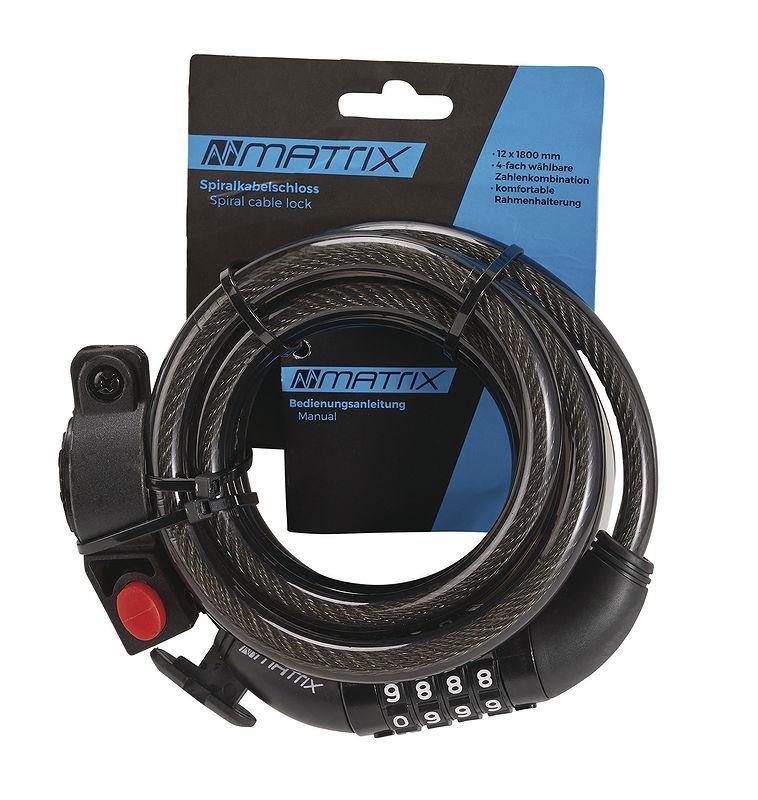 MATRIX Zahlen-Spiralkabelschloss SPZ 1800 12 mm schwarz 180 cm EVP