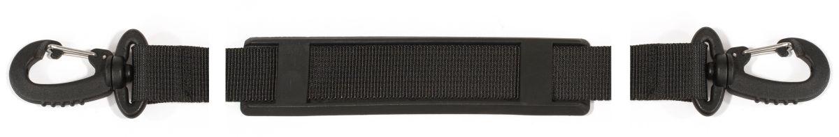 Universeller Tragegurt für ORTLIEB-Taschen mit D-Ringen, mit Schulterpatte aus Kunststoff sowie Karabinern an den Enden.