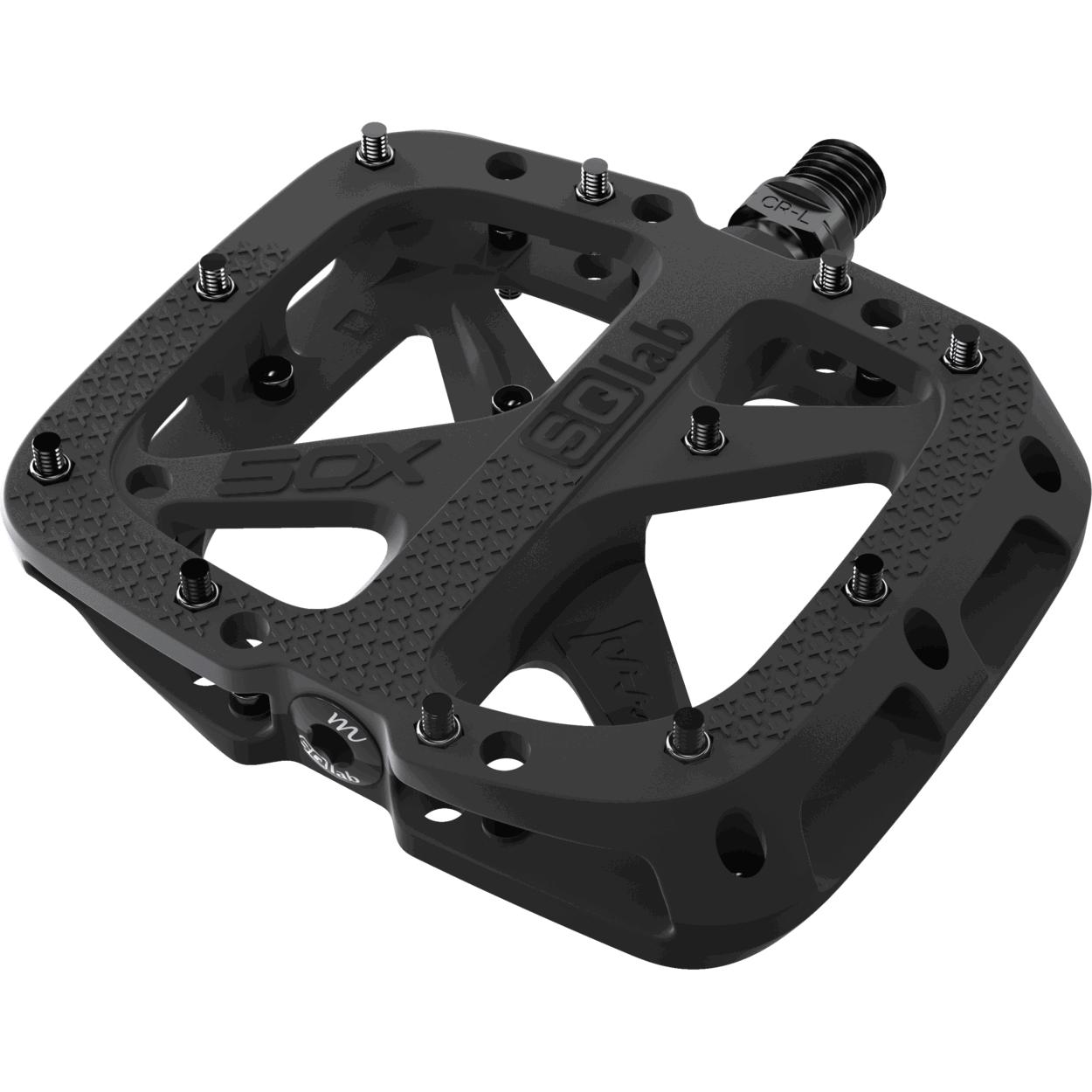 Zuverlässig und Robust Warum Kunststoff - warum nicht? Das hochwertige 5OX Kunststoffpedal ist in Sachen Gewicht und Dauerhaltbarkeit auf keinen Fall schlechter als die gleiche Version aus Aluminium. Bei harten Kontakten mit z.B. Steinen und Felsen kann das Material nachgeben und hat in unseren Tests meist mehr ausgehalten als die Aluminium Variante. Aus diesem Grund setzen wir auf faserverstärkten Kunststoff und verzichten auf eine Aluversion. Wichtig ist uns die Lagerung hier - wir haben die besten und langlebigsten Lager verbaut. Drei unterschiedliche Achslängen sorgen für eine physiologisch natürliche Fußstellung auf dem Pedal. Geeignet bei größeren Füßen, einer V-förmigen Fußstellung oder größeren Sitzknochenabständen, die meist einen höheren Q-Faktor benötigen. Die leicht konkave und nach außen rotierte Pedalfläche ermöglicht einen ergonomischen Stand auf dem Pedal und erzeugt gleichzeitig enormen Grip. Um eine maximale Trittfläche zu schaffen schließt diese bündig mit der Pedalachse ab. Hierdurch entsteht keine störende Erhöhung der Pedalfläche auf der Fußinnenseite, wie bei vielen anderen Flat Pedals. Details: + Verfügbar in drei verschiedene Achslängen + Angepasst an die natürliche Fußstellung + Große und breite Standfläche (115 x 105mm) + Faserverstärkter Kunststoff + Japanische Kugellager + IGUS Gleitlager Made in Germany + Austauschbare Pins Lieferumfang: 1x Paar SQlab Pedale 5OX 3x Ersatzpins Achslängen: Small: Schuhgröße 36 - 40 Medium: Schuhgröße 41 – 45 Large: Schuhgröße 46 - 50