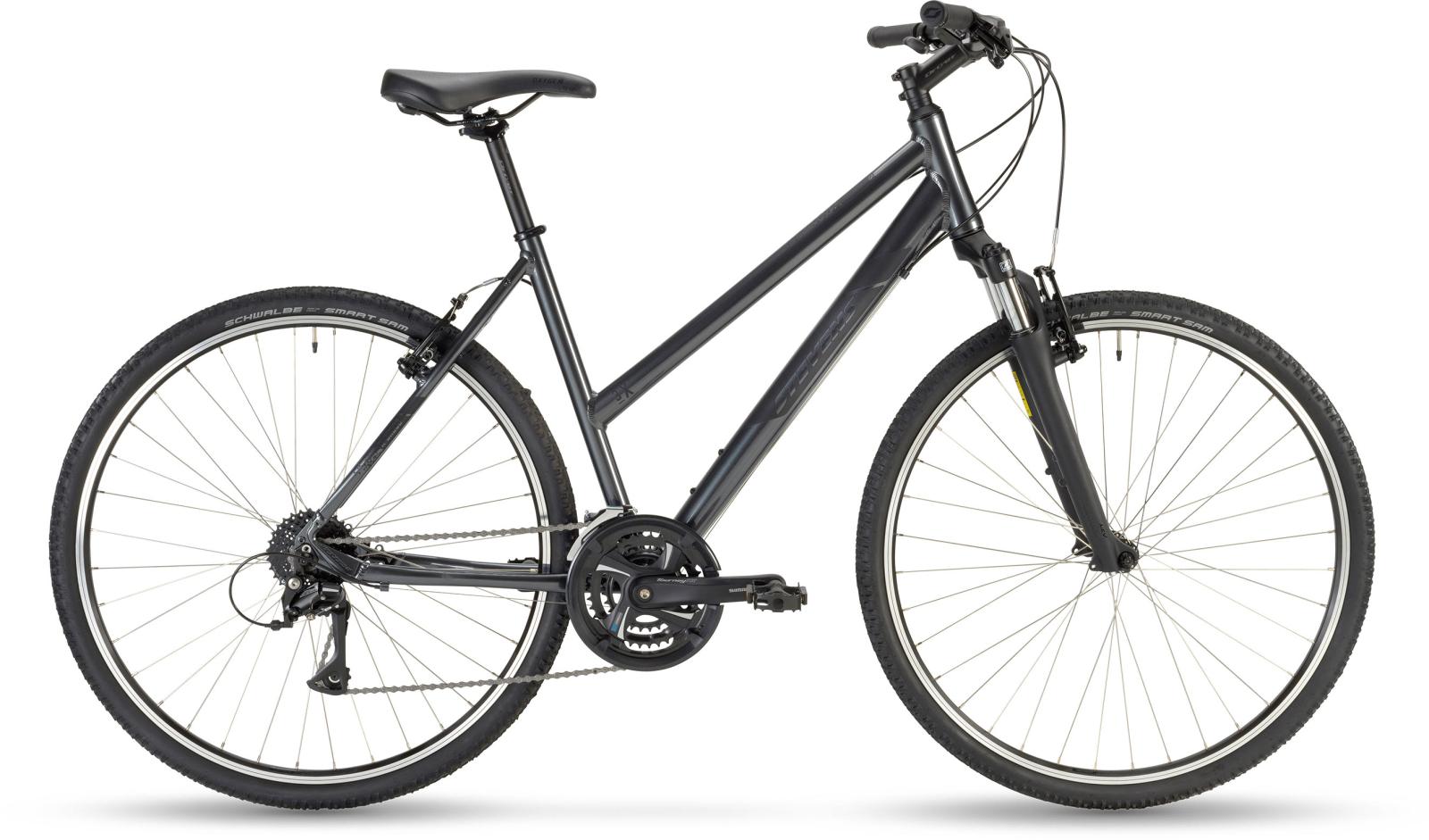 Und nichts überwindet die Grenzen der Routine so leicht wie ein flinkes, zuverlässiges Rad. Geschmeidig bügelt die verstellbare Federgabel der Stadt die Falten weg und dem Land die tiefen Runzeln. Schalten und Walten? Das regelt der Shimano 3x8fach-Antrieb ganz intuitiv.