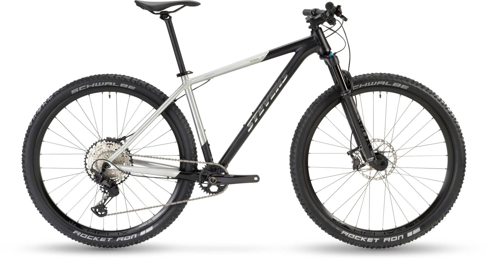 Ein fein verschweißter Alu-Rahmen mit vielen schlauen Details, die hochwertige Shimano Deore XT 1x12fach-Schaltung samt Deore XT-Scheibenbremsen, Fox 32 Float-Federgabel mit Lockout-Remote, Steckachsen vorne und hinten – lauter starke Zutaten definieren das Colorado 401. Doch auf Trail und Rennstrecke spürt der Fahrer vor allem die Vorzüge der sportlich-agilen STEVENS Geometrie.